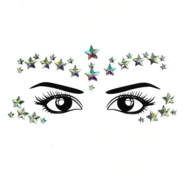 Gem Stickers for Face! Easy to apply and long-lasting, these dazzling stickers let you shine like a festival diva. Choose from a variety of colors and designs to create your unique style. Hypoallergenic and skin-friendly, these stickers stay put, so you can dance all day and night. Unleash your creativity and sparkle at every festival!